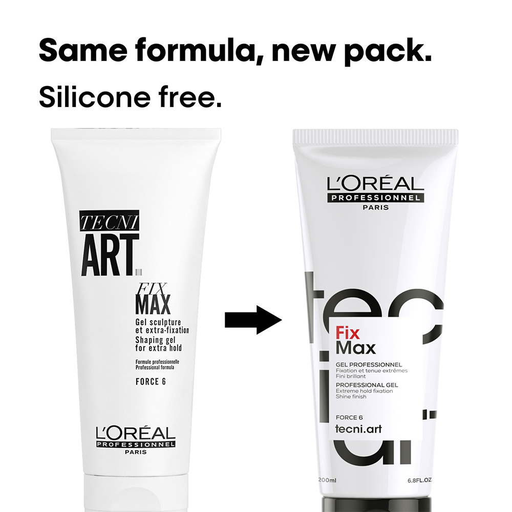 Loreal Professionnel TecniArt Fix Max Shaping Gel is a maximum strength shaping gel for extra styling hold on all hair types. Formulated with a clean, refreshing fragrance, it is not sticky and leaves no residue, either in the hair or on the scalp. Creates soft and shiny hair, slicked-back or spiky styles.